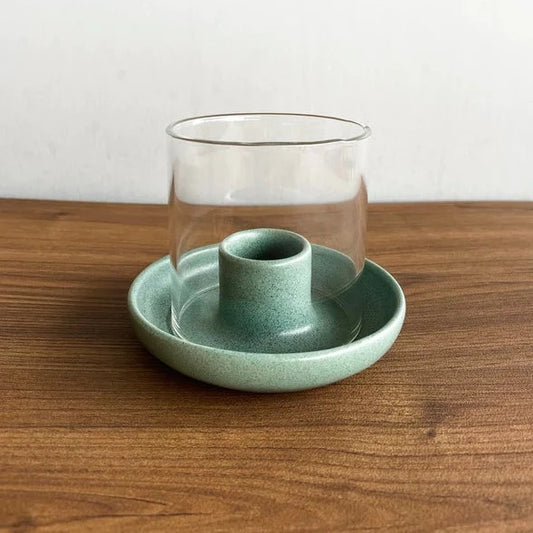 Teal Candle Holder With Glass Chimney