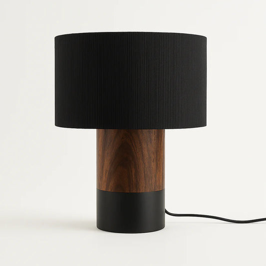 Dual-Tone Rosewood Table Lamp with Black Shade
