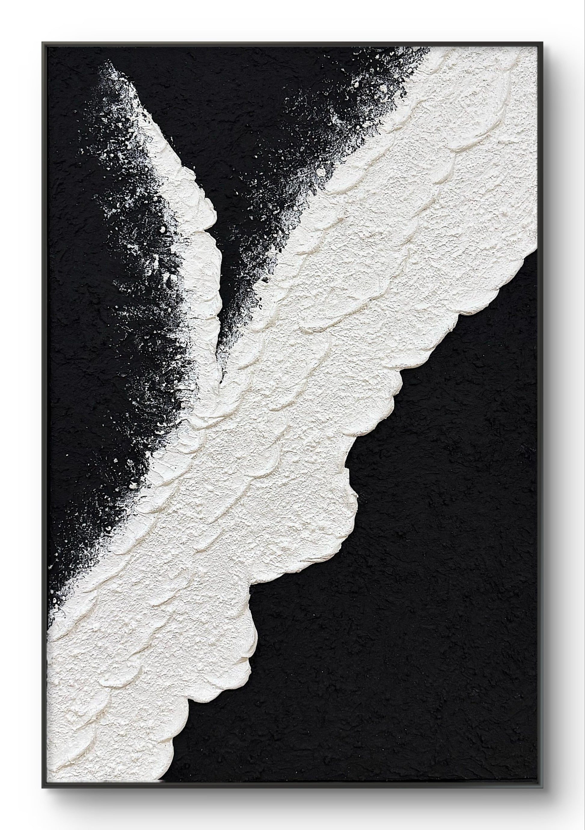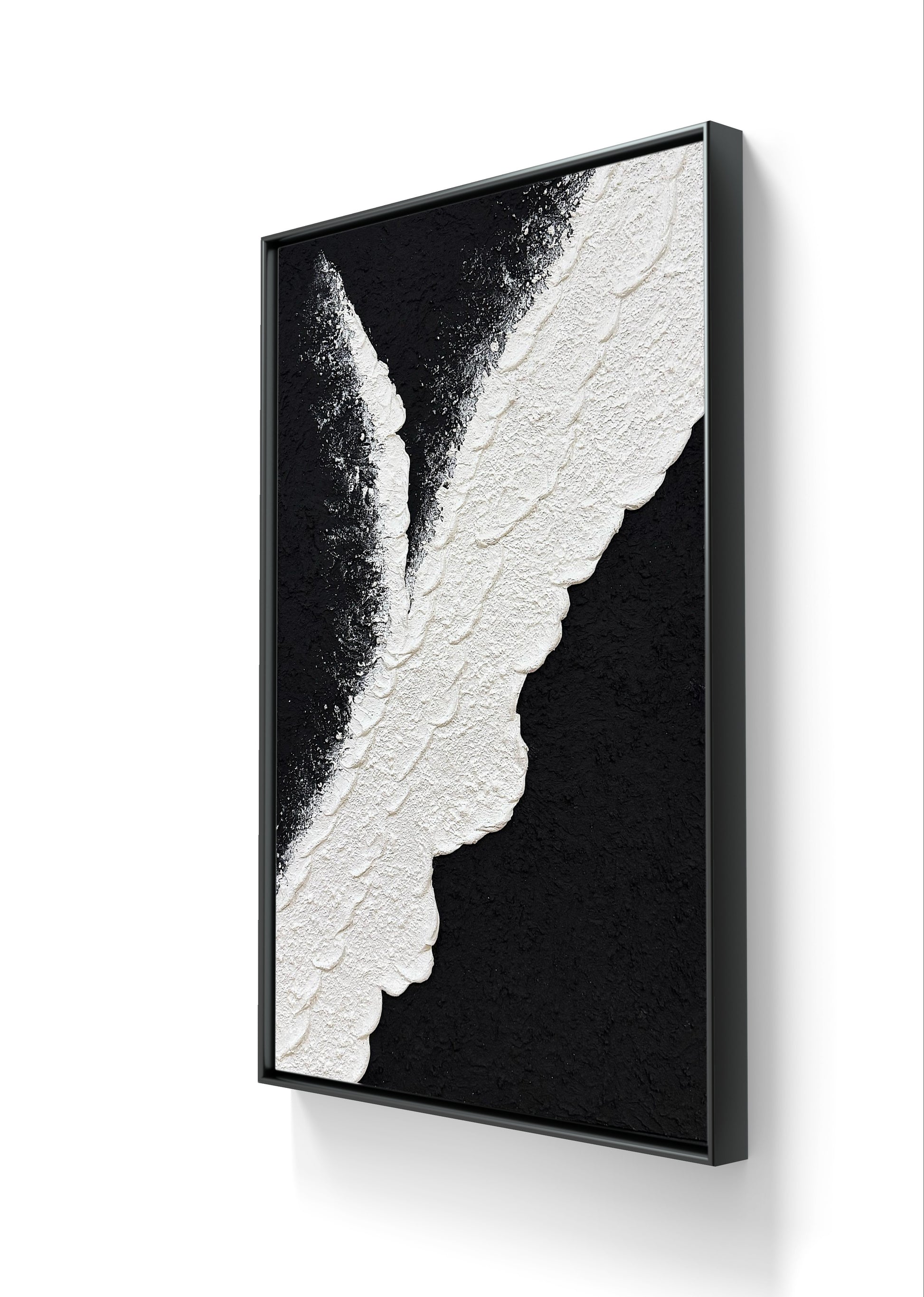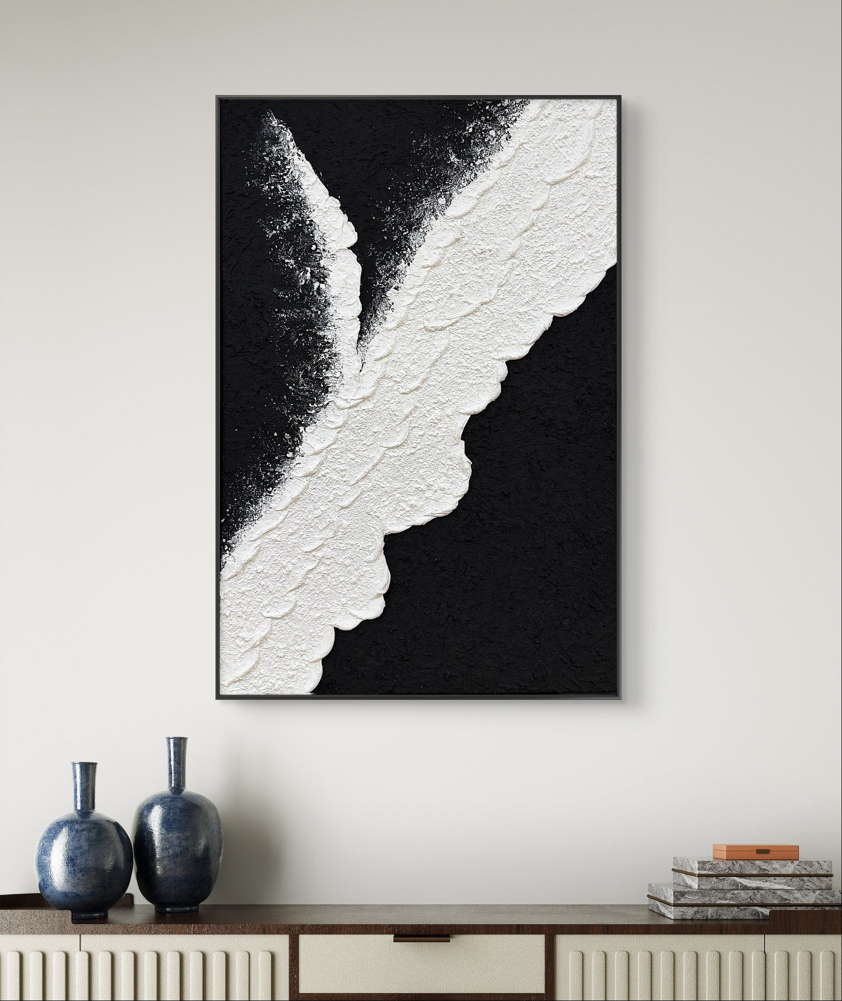 Black White Minimalist Wall Art, Large Black Texture Wall Art, White 3D Plaster Painting, Contemporary Minimalist Painting Modern Wall Art