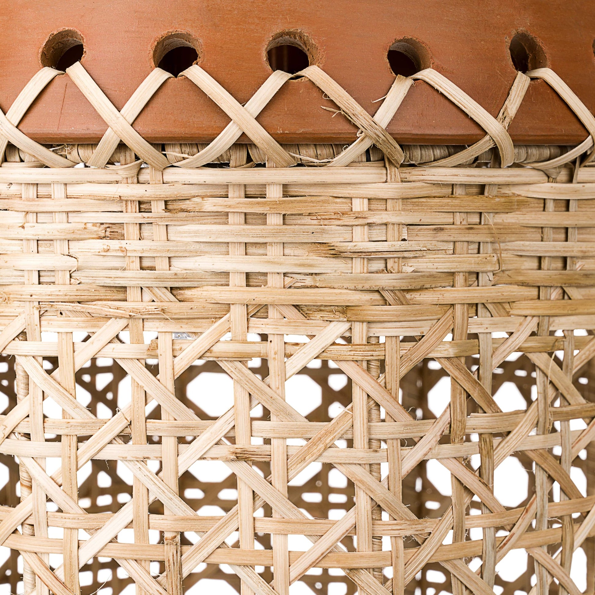 This handwoven terracotta bamboo pendant lamp gives off a beautiful soft warm light and looks great in a living room, dining room or bedroom. It incorporates an earthly base in terracotta. Its versatility makes it Ideal for any home decor from coastal to boho and rustic. It goes well also as a bedside lampshade, over a kitchen island or a dining table, in a nursery, entry hall or over a patio.