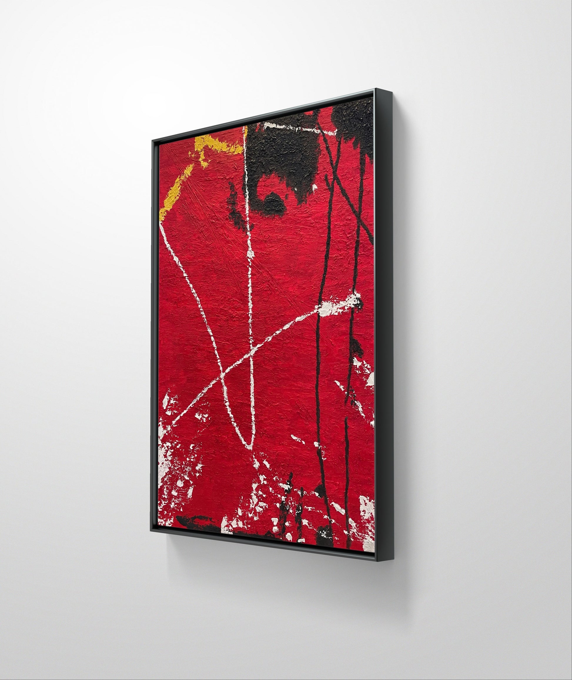 The painting "Crimson Crossroads" captures a moment of intense introspection! The canvas is drenched in a deep, rich crimson hue, with the color dominating the entire scene, evoking both passion and danger.