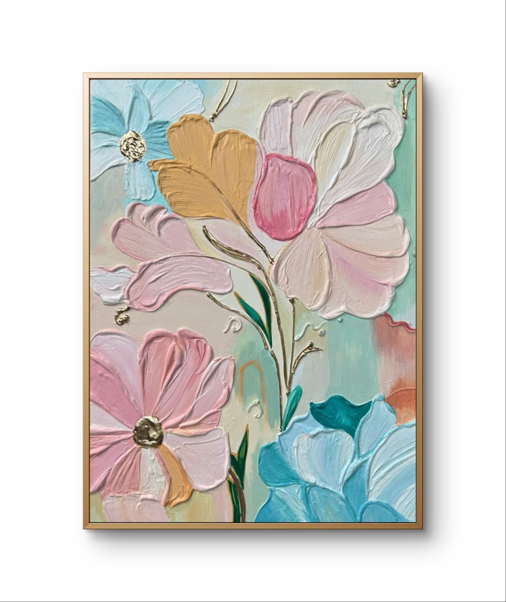 Floral Texture Art is a stunning blend of delicate blooms and rich textures, bringing the beauty of nature to life. The intricate layering creates depth and dimension, making each petal and leaf stand out in a graceful composition. Perfect for adding an elegant and serene touch to any space, this artwork embodies timeless charm and artistic sophistication.