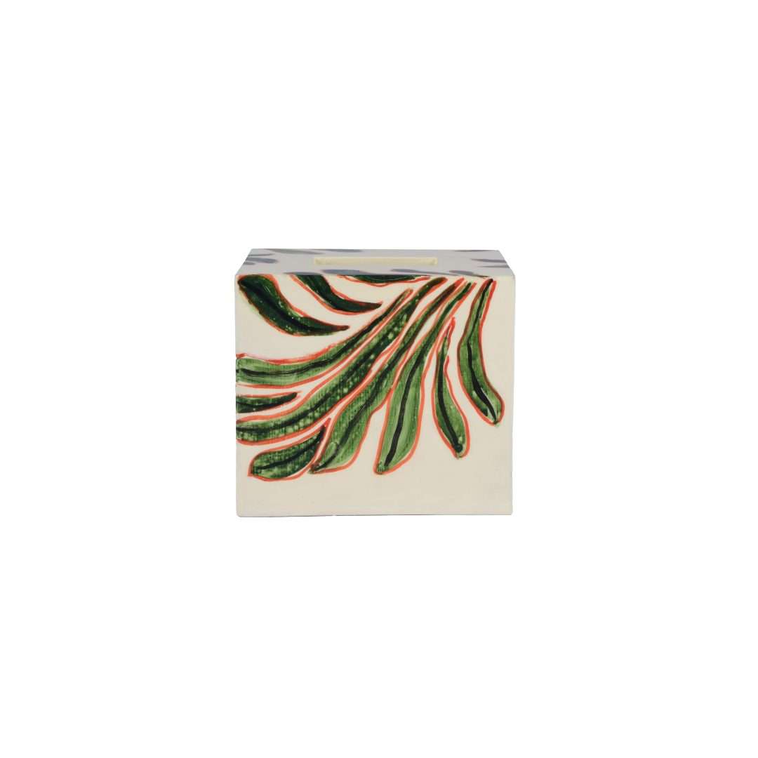 Crafted with an artist? eye for detail, our Leafy Serenity Tissue Box Holder replicates the delicate veins and contours of leaves, bringing the enchanting world of foliage into your living space. The hand painted design beautifully captures the essence of nature? serenity.