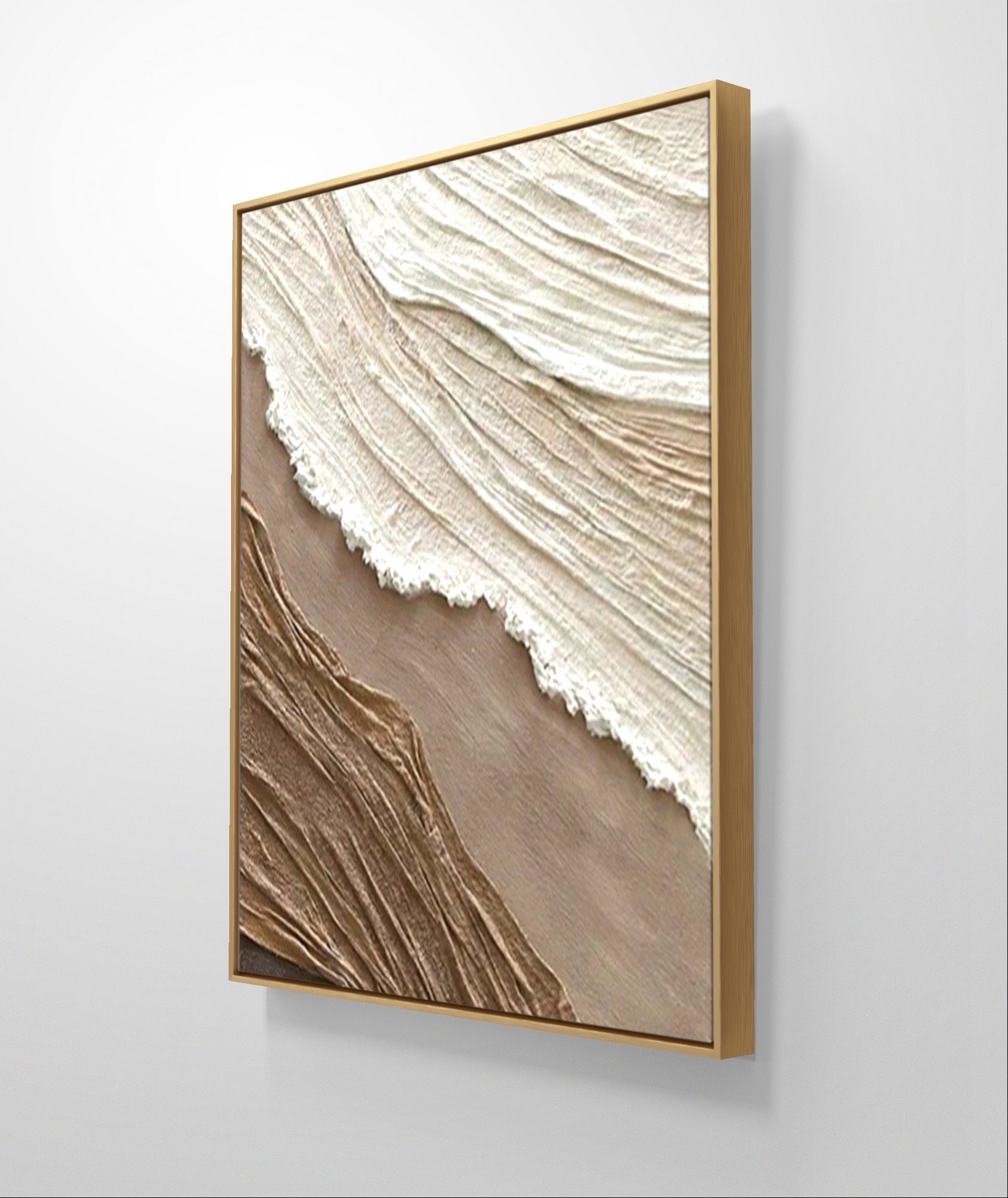 This stylish wall painting features abstract curved patterns in earthytones of brown & beige on a light background. It perfectly captures the frothy waves.