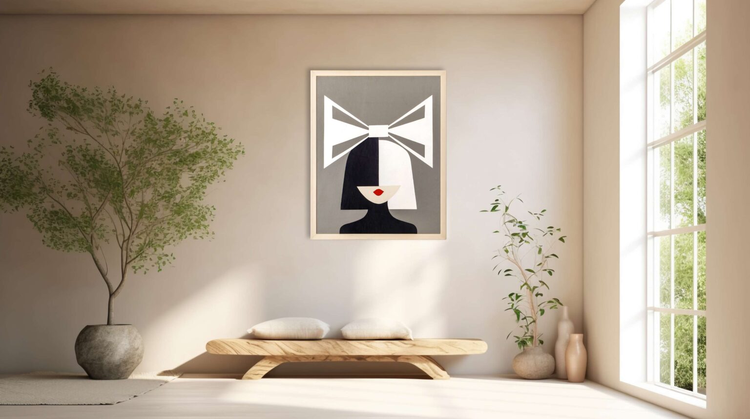 This Cute Girly wall art is a playful and stylish addition to any room. The artwork features a bold and graphic portrait of a girl with a striking white bow adorning her head. The contrasting colors of black, white, and red create a visually appealing and modern look. This frame is a perfect blend of whimsy and sophistication, making it a unique and eye-catching piece for your home decor.