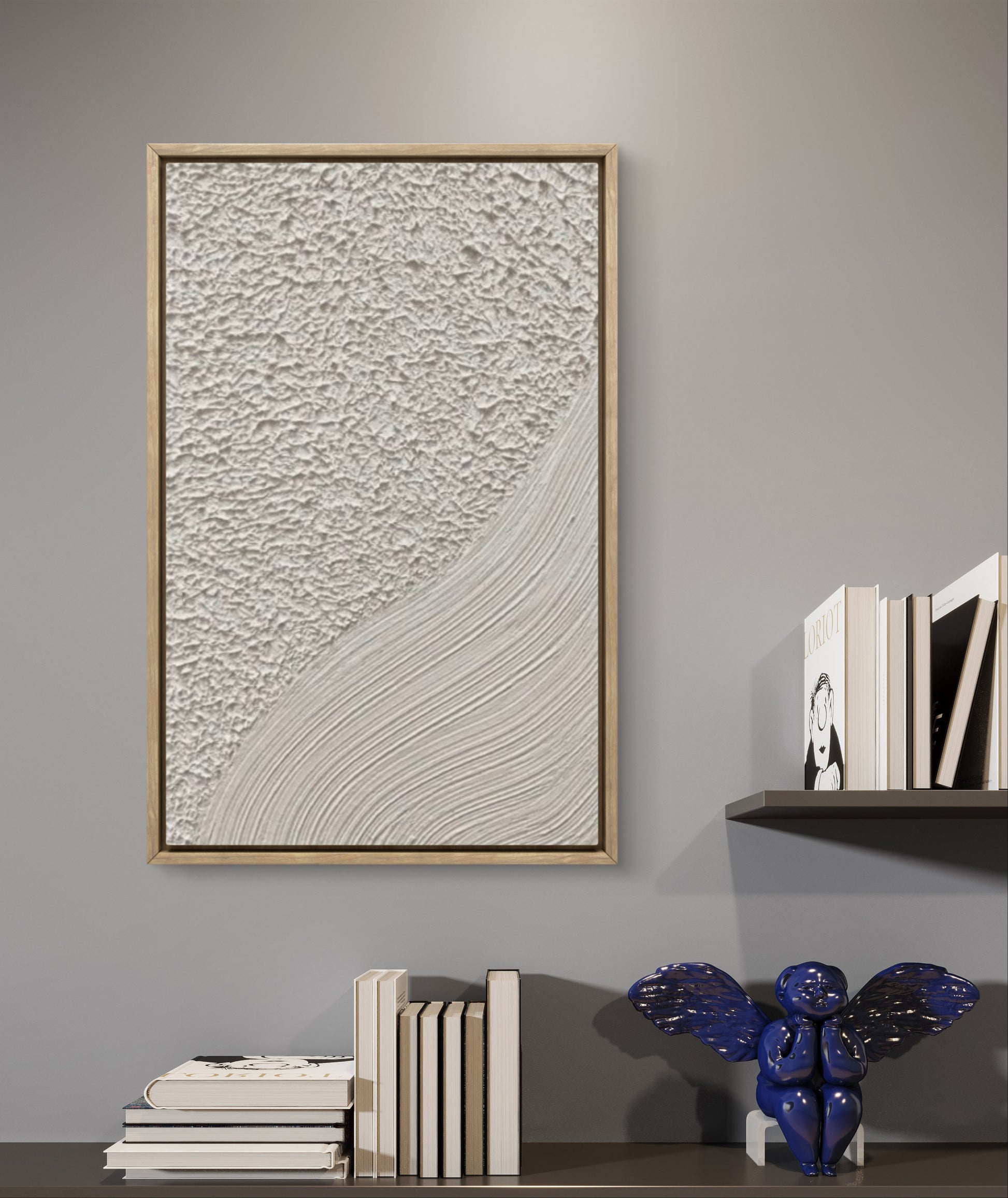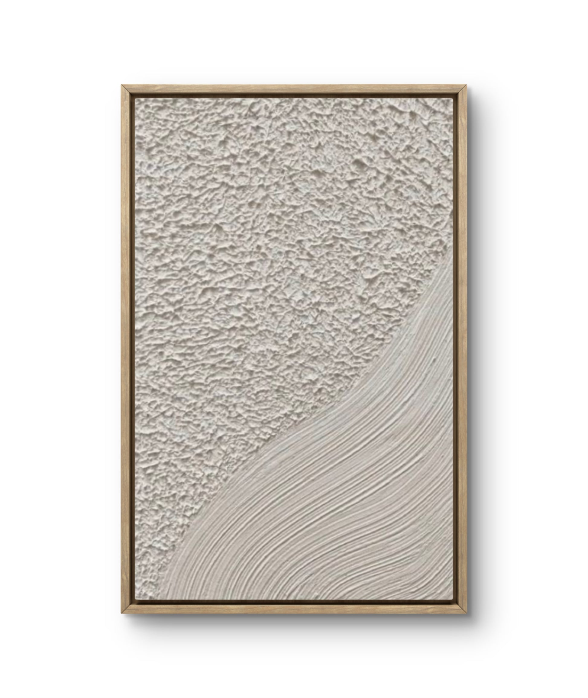 This handmade textured artwork brings a soothing balance of contrasts — rough, organic patterns blending seamlessly into smooth, flowing lines. The play of textures creates depth and movement, evoking a sense of harmony and calmness. Its neutral tones make it a versatile piece, perfect for modern, minimal, or contemporary interiors.